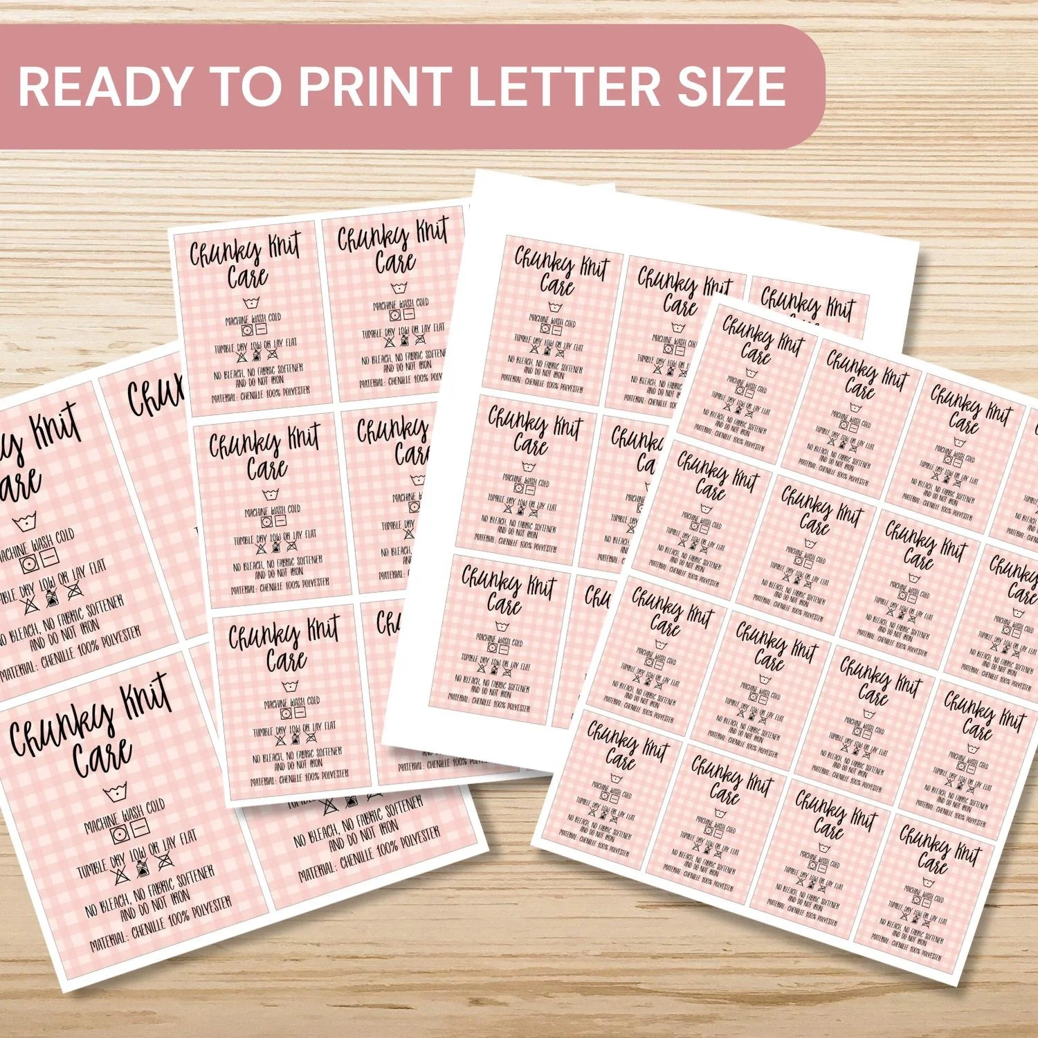Chunky Knit Blanket Care Card Printable, Wash Instructions Tag Digital Download, Chenille Polyester Tags, PNG Files
