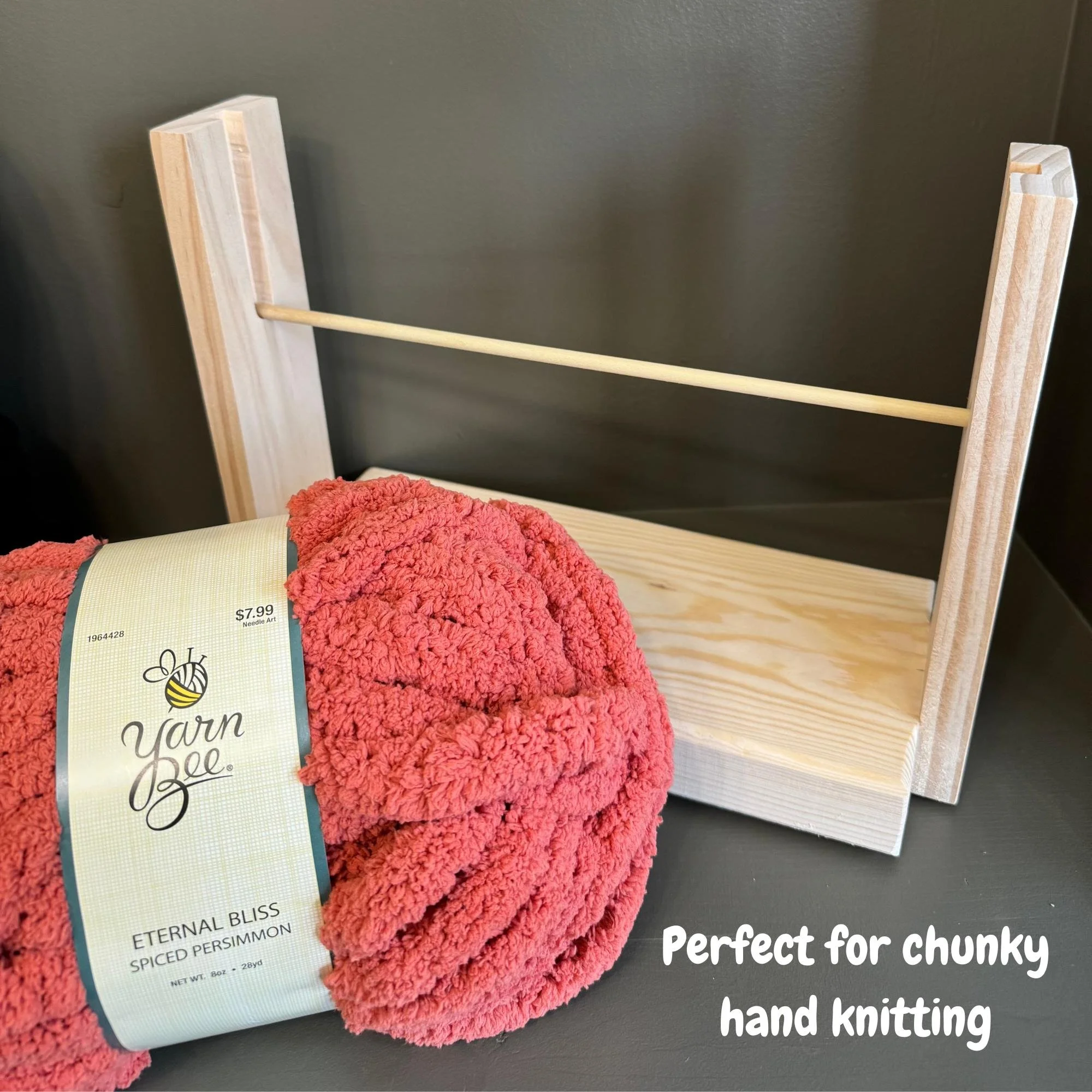 Holds skeins and rolls up to 12 inches wide. This product is perfect for chunky knitting, macramé, crochet, ribbon work, wreath making, and more!